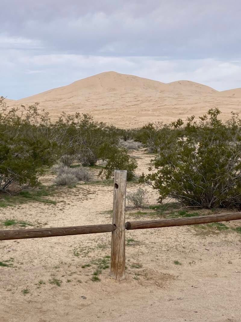Got out of LA by noon yesterday (3/11), smooth sailing down the freeway. Stopped in Barstow at Walmart to buy groceries, then on to the Mojave National Preserve to camp. Right beside Kelso Dunes in the Preserve there is a dispersed camping area with a couple of vault toilets and lots of fire rings spread out over a large area. We parked beside one fire ring. There were maybe a half dozen other campers around. Plenty of space between everyone. When the sun went down there was a bottom sliver of the moon in the western sky and the constellation Orion seemed so clear and so close. I could see the stars of Orion’s sword hanging from his belt. Normally I only see the belt. A couple of groups had campfires going. Smelled good and was comforting to see the distant flicker of it. Fell asleep with the sound of insects chirring outside. Had thought we might spend two nights here, but the forecast starting tomorrow afternoon is for 50 mph wind gusts. Don’t want to be camped next to sand dunes with that kind of wind blowing sand around. So we’ll pull out in the morning before the wind builds up.