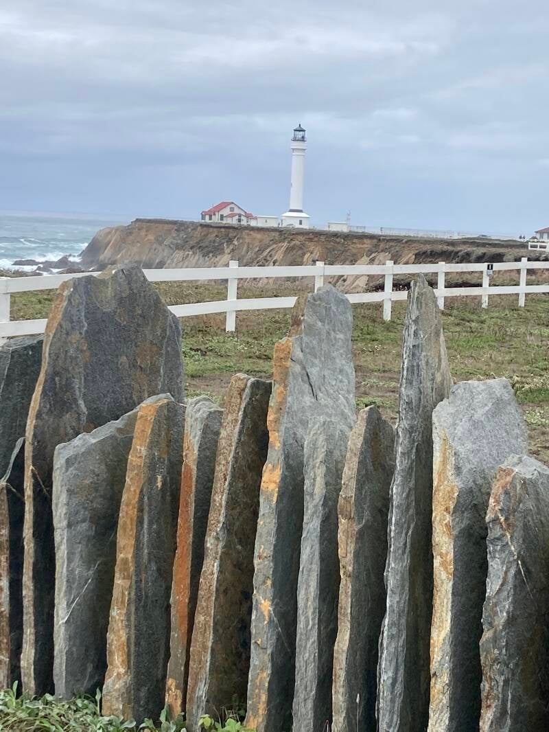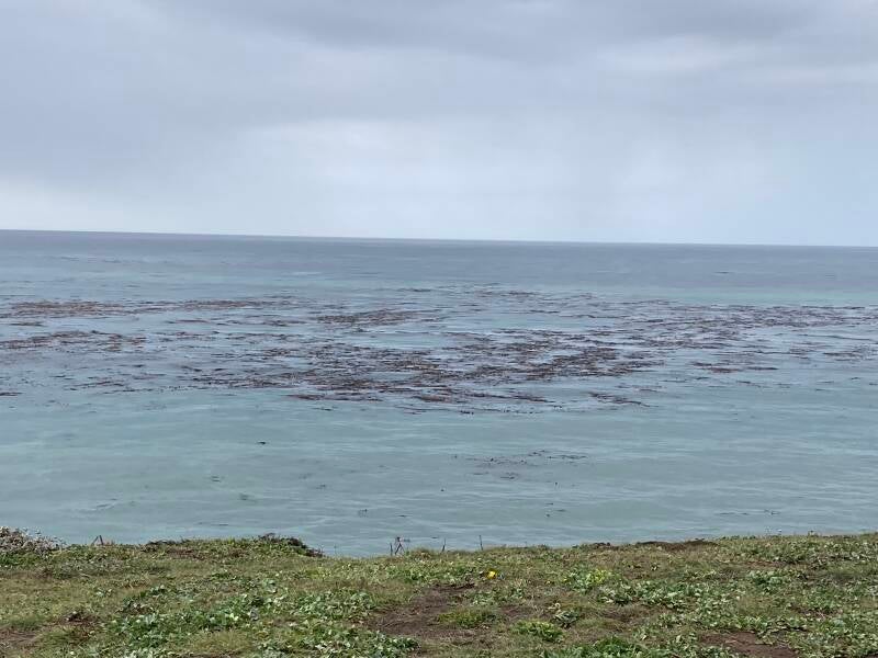 Drove south to Point Arena Lighthouse. The surf there was even wilder. Took some video of it, but can't seem to post it here. Now we are pulled out and parked at Ocean View Point. Calm here with lots of kelp floating on top. Slight mist hitting our windshield. I think it will begin to rain soon.