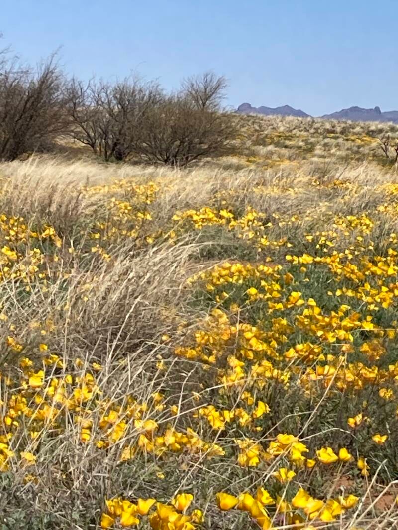 We headed toward Arivaca, about 30 miles west and slightly north. Buenos Aires National Wildlife Refuge is there. Arrived at the refuge in the pouring rain, another beautiful spot. This is rolling, semi-arid grassland punctuated with mesquite woodlands. So green!! I’m sure it not like this in June when the heat sets in. This gorgeous place allows free camping in designated spots with fire rings. There are at least 100 spots, widely dispersed over the entire refuge. We slept in site #75 for two nights while it rained, then drove into town to get rid of garbage and to check out the mercantile. The people in town are very friendly. They have free access to water behind the store, plus regular gas and propane fill ups too, so we can fill up with everything we might need right there. The town dump is a fenced in circle of maybe two dozen dumpsters with free and easy access to all, so we have an easy place to get rid of trash too. We like Arivaca and LOVE the wildlife refuge.
